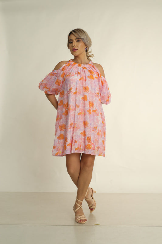 BLOSSOM UNVEILED MINI DRESS IN PINK ORANGE PRINT