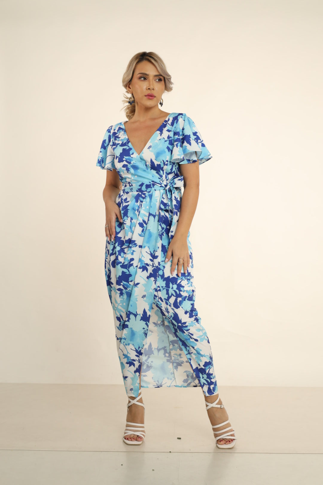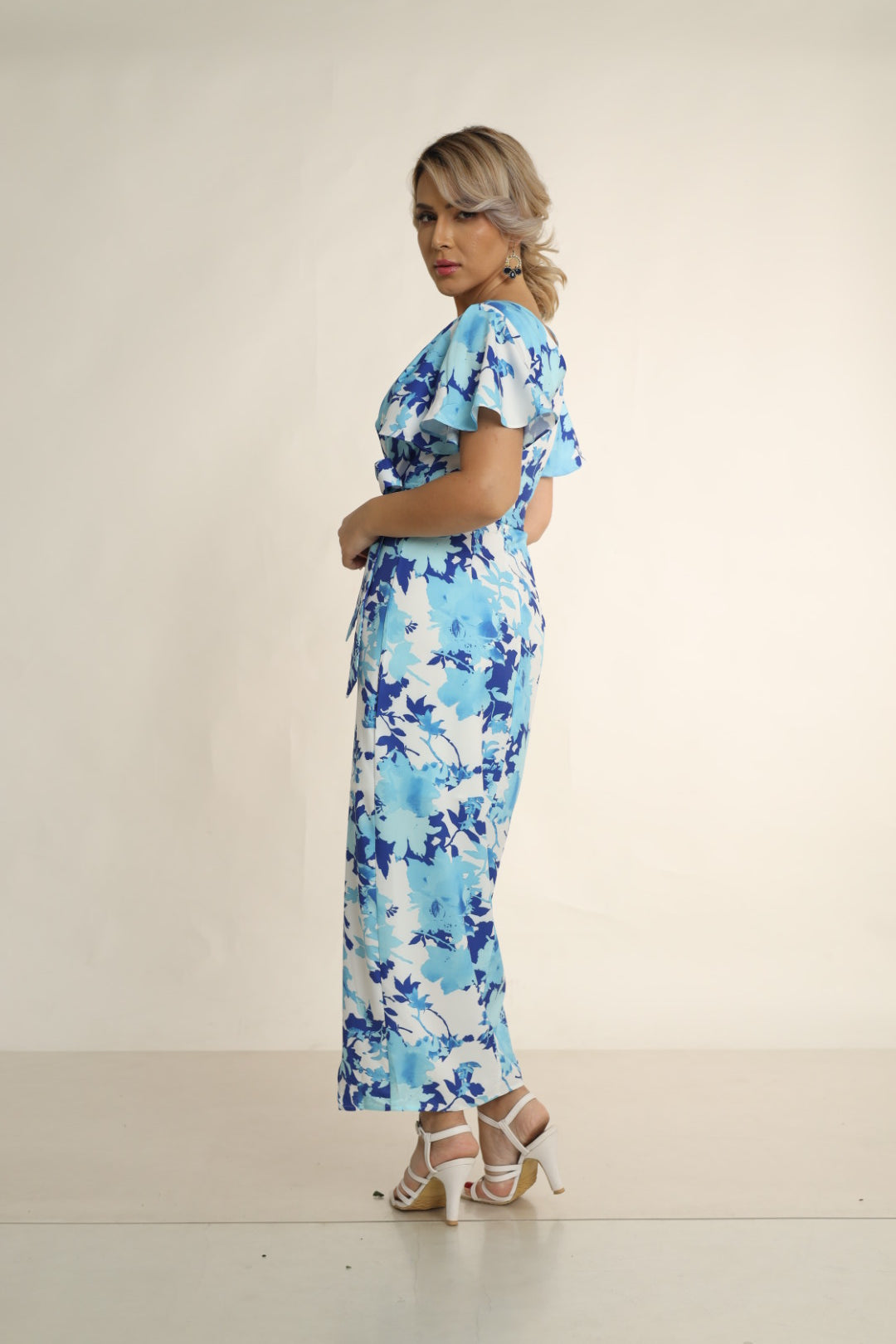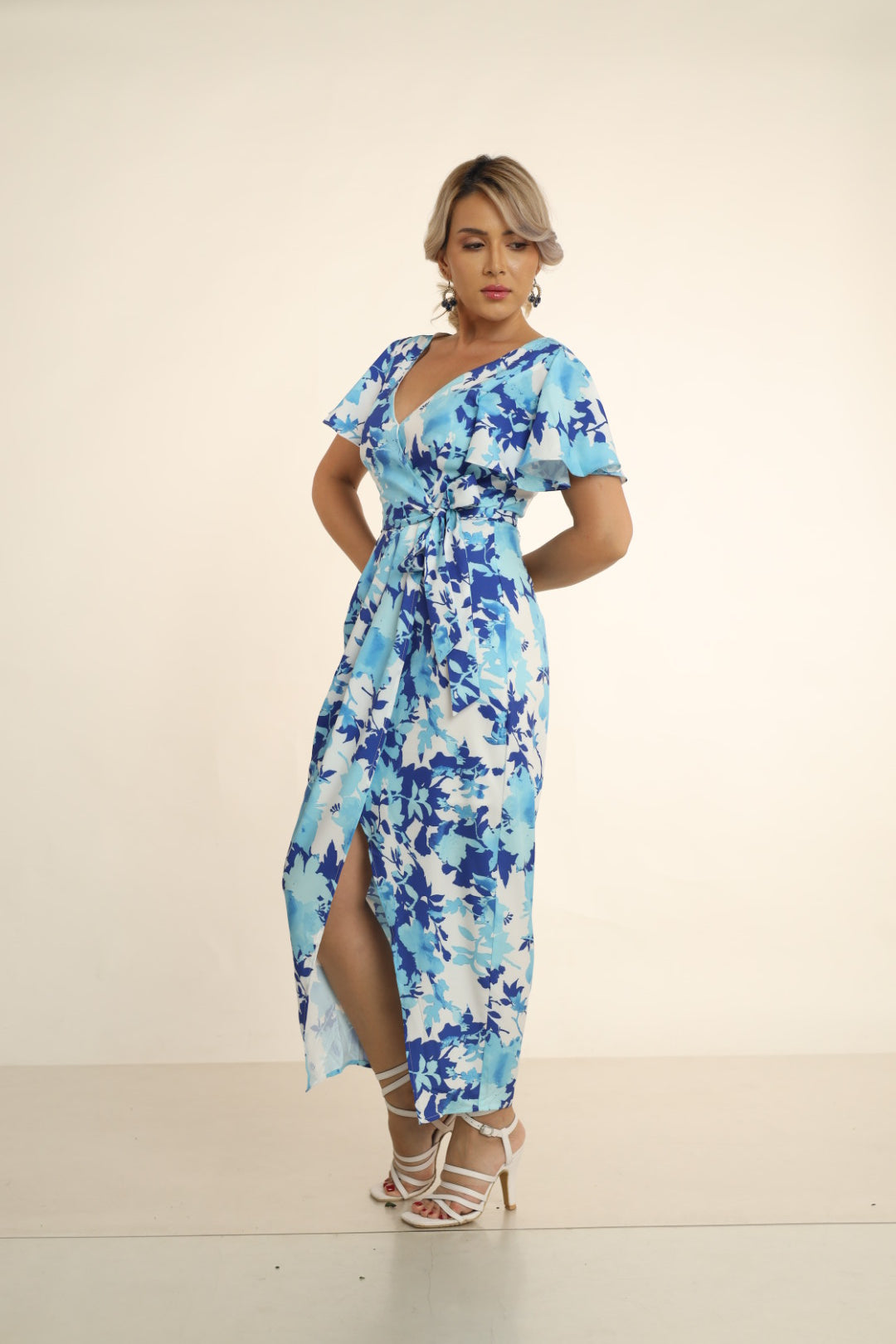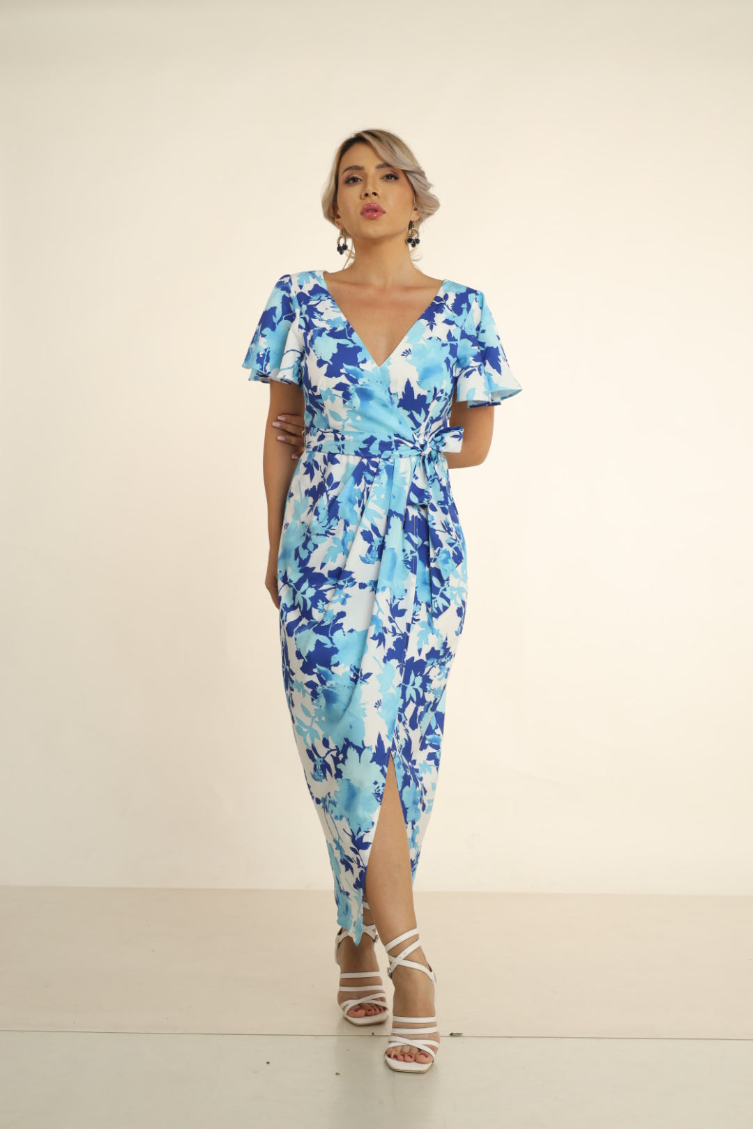 MILI FLORAL BUTTERFLY SLEEVE DRESS WITH TULIP HEM
