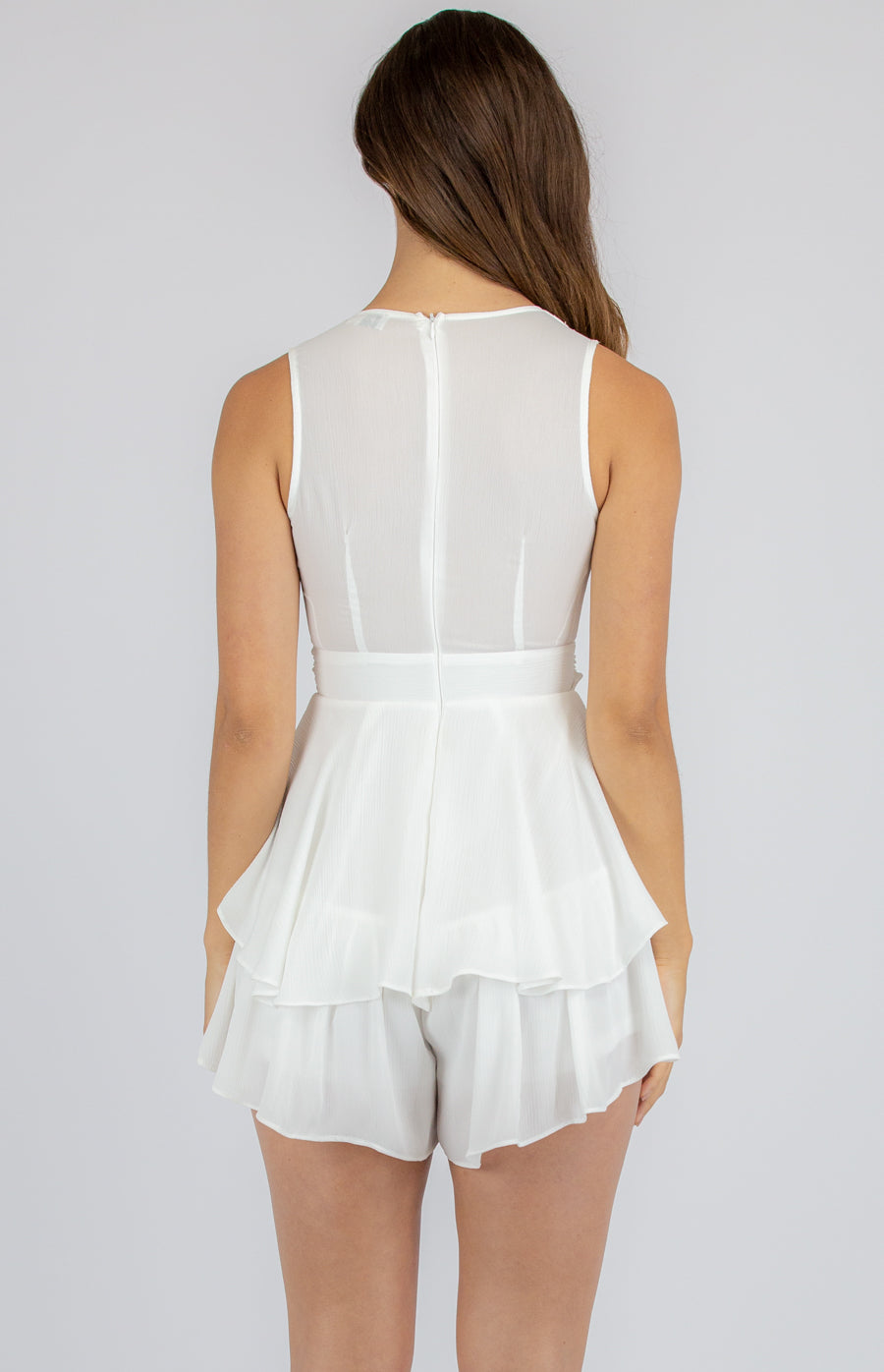 WELMA SLEEVELESS PLAYSUIT WITH RUFFLE DETAILS IN WHITE